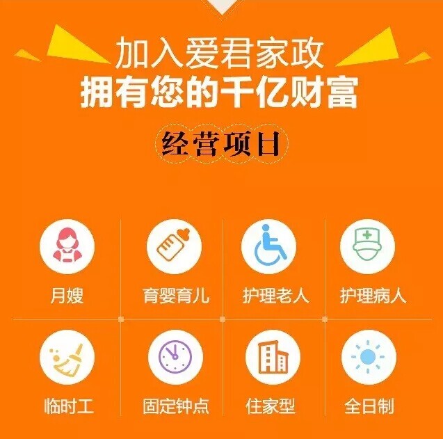 在2016年12月31日前,加盟“爱君家政”和“周洁轮“项目就可以享受以下优惠。
